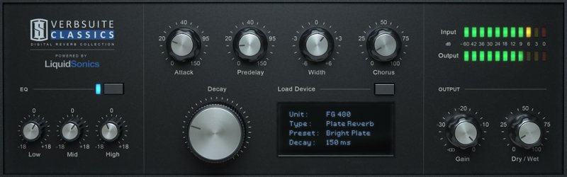 Slate Digital в сотрудничестве с LiquidSonics представляют новый ревербератор VerbSuite Classics, включающий 8 классических цифровых модулей реверберации последних четырех десятилетий в одном плагине. VerbSuite захватывает правдивый тон с использованием патентованной обработки Fusion IR. В отличие от статических импульсов, которые можно найти в обычных конволюционных ревербераторах, Fusion IR способен воспроизводить подвижный характер модулирующих цифровых ревербераторов, делая общий тон богатым, гладким и динамичным.