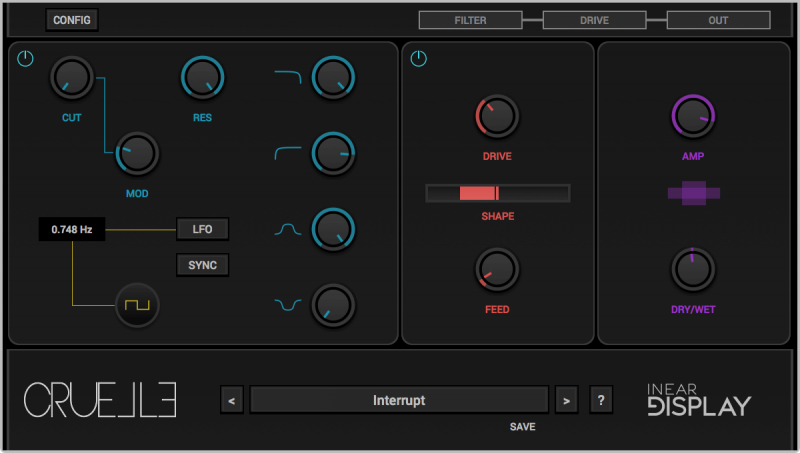 Cruelle это жестокий эффект искажения, разработанный для того, чтобы превращать звуки в кричащие тембры и глитч артефакты. Сочетая аналоговый фильтр с модуляцией частоты дискретизации и модулем агрессивного цифрового дисторшна, Cruelle позволяет быстро создавать дикие пресеты, благодаря интуитивному и чистому пользовательскому интерфейсу.
