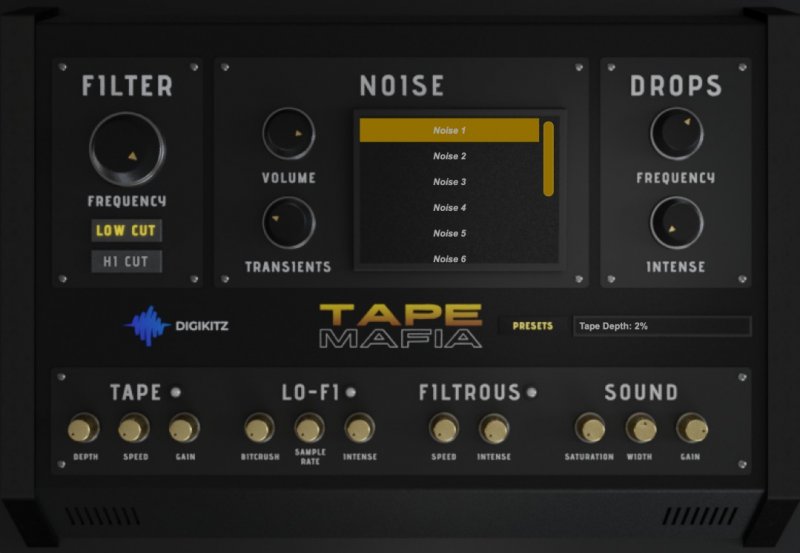 Tape Mafia это плагин, который добавит качество аналоговой кассетной ленты в виде эффекта магнитного и винилового шума, а также других эффектов в ваши треки. Мы включили в плагин 10 уникальных шумов кассеты и виниловой пластинки, записанных в нашей профессиональной студии. Эти шумы начинаются только тогда, когда какой-либо звук проходит через плагин.