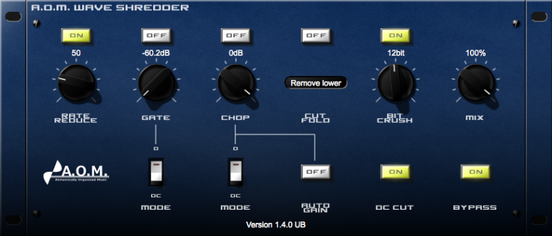 A.O.M. Wave Shredder создан для внесения безумия в ваши треки. Wave Shredder коллекция разрушительных процессоров: Rate Reducer, Zero-time Gate, Waveform Cut&Fold, Chopper и Bit Crusher.