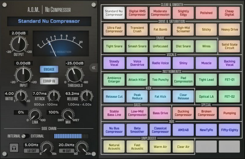 A.O.M. Invisible Limiter - прозрачный look-ahead brickwall лимитер с автоматической подстройкой времени параметров attack/release. Алгоритм Invisible Limiter сокращает разницу между оригинальным и обработанным материалом. Такое поведение позволяет избежать окраски вашего материала от финальной стадии лимитирования. Даже при достаточно жесткой обработке, трудно отличить материал до и после обработки.