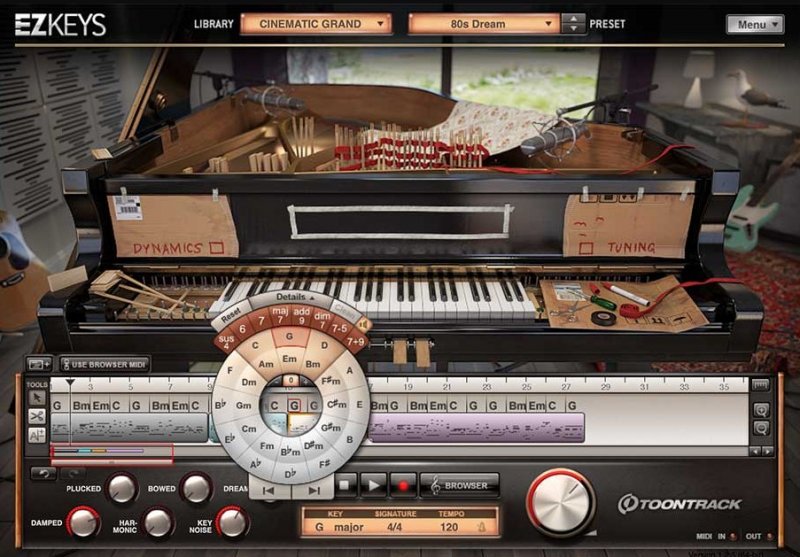 EZkeys Cinematic Grand это специально подготовленное пианино - традиционный инструмент, звук которого изменен объектами, расположенными на или между струнами. EZkeys Cinematic Grand представляет совершенно новый гибридный инструмент, в котором идеальная точность сочетается с измененными гармониками и многослойными текстурами, образуя тембры пианино, которые вы раньше не слышали. Основанный на классическом B?sendorfer 1891 года, этот единственный в своем роде инструмент был записан в четырех отдельных конфигурациях, которые были затем насыщены различными цепочками эффектов для формирования уникальных звуковых тканей.