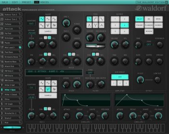 Attack - перкуссионный синтезатор с мощным звуковым витруал-аналоговым движком. Он легко воспроизводит звуки классических аналоговых синтезаторов 80-х годов и электронные ударные 90-х.