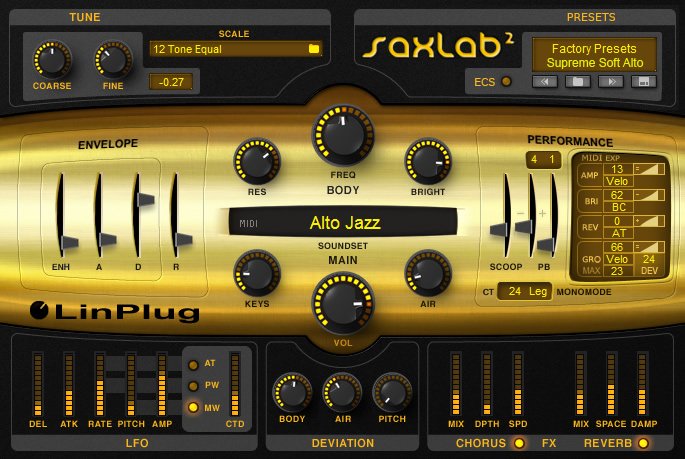 Вдохновляющий набор звуков в сочетании с легким в использовании интерфейсом делают LinPlug SaxLab идеальным инструментом для музыкантов желающих имитировать реальный саксофон.